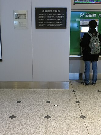 現在の東京駅には「原敬」が暗殺された現場に、印が付いています。