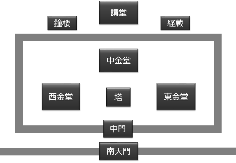 お寺を勉強する際は、「伽藍配置(がらんはいち)」を気にして欲しいです。