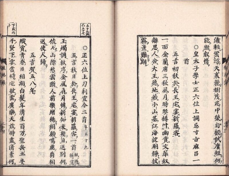 天智天皇の頃から奈良時代までの、計64人の漢詩120首を収めています。