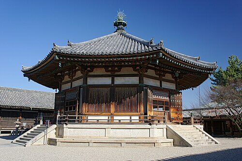 法隆寺自体は飛鳥文化ですが、「夢殿」は奈良時代に増築されたものです。